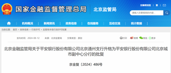 2024年8月12日,国度金融监管总局北京监管局批复,答允祥瑞银行北京通州支行升格为祥瑞银行北京城市副中心分行,通州支行自行根除;北京城市副中心分行行长、副行长分别由张丹、张进芳担任。