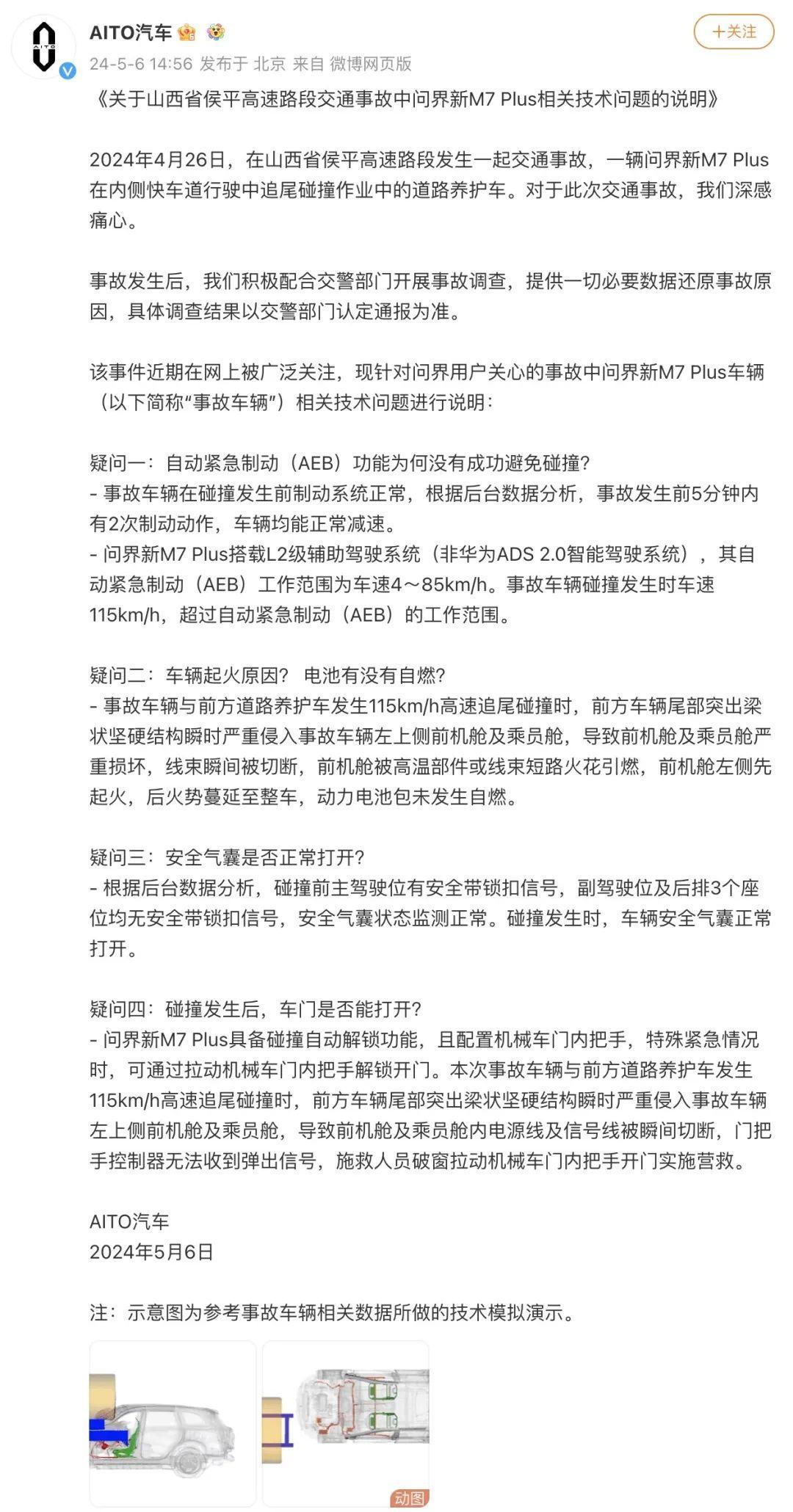 5月6日下昼赌钱平台, AITO汽车官方微博发布《对于山西省侯平高速路段交通事故中问界新M7 Plus磋商时间问题的讲明》,初度表示其官方看望的恶果。笃定如下: